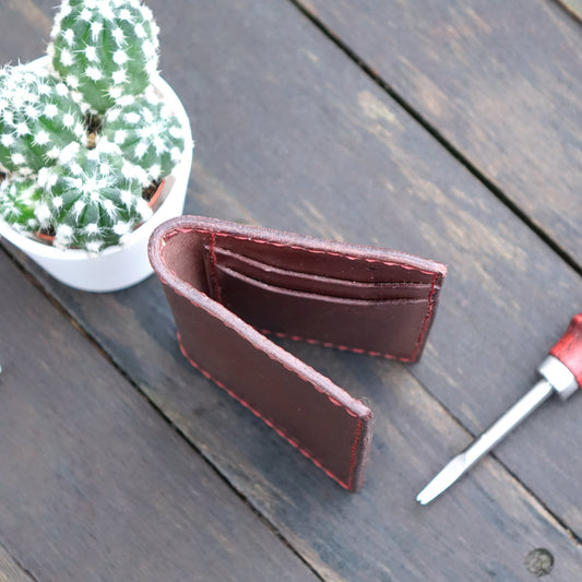 Handmade Minimalist Slim Leather Bifold Card Wallet