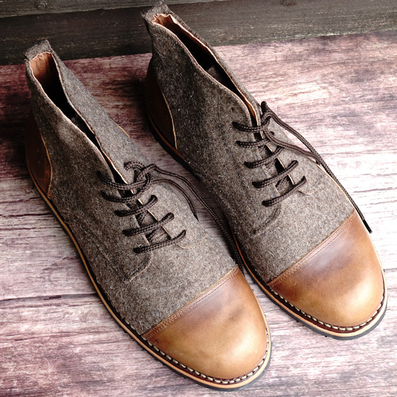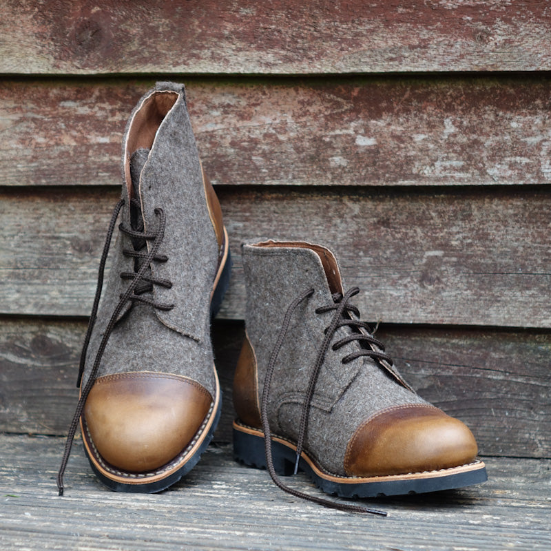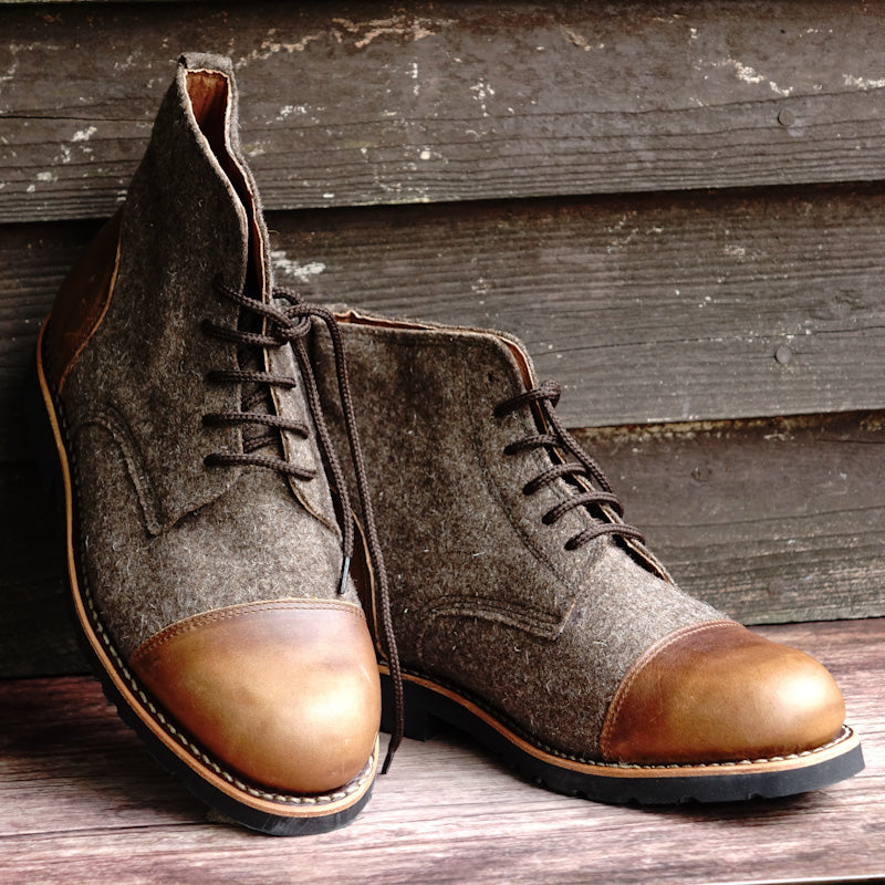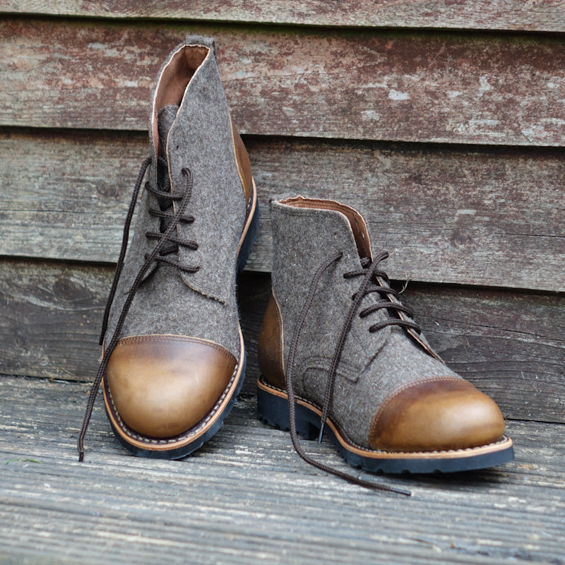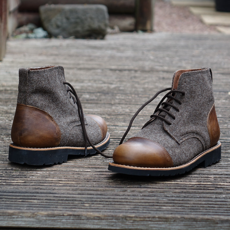 Cho Oyu’s burel & leather lace-up boots offer a unique combination of comfort, style, and functionality. Featuring a burel boot with a leather cap toe and heel for a distinctive look, you're sure to get noticed as you step out!! These boots are the perfect accompaniment to any outfit, from casual to formal, offering a range of looks from dressed up to dressed down. With its lace-up design, your feet will stay comfortable all day long during long walks or everyday use, walking in style and confidence!