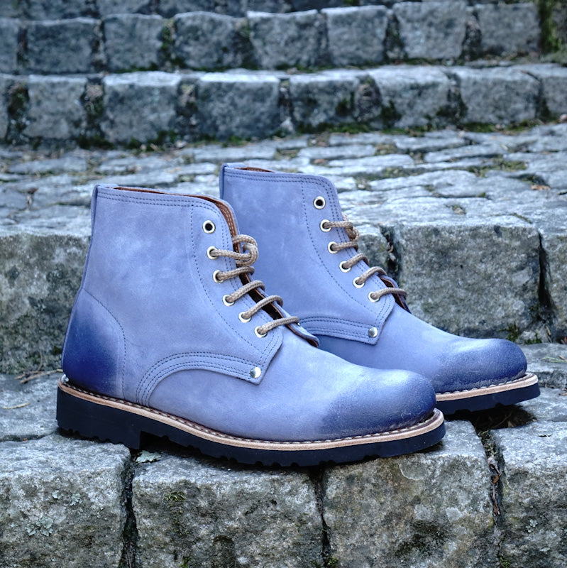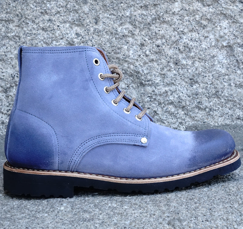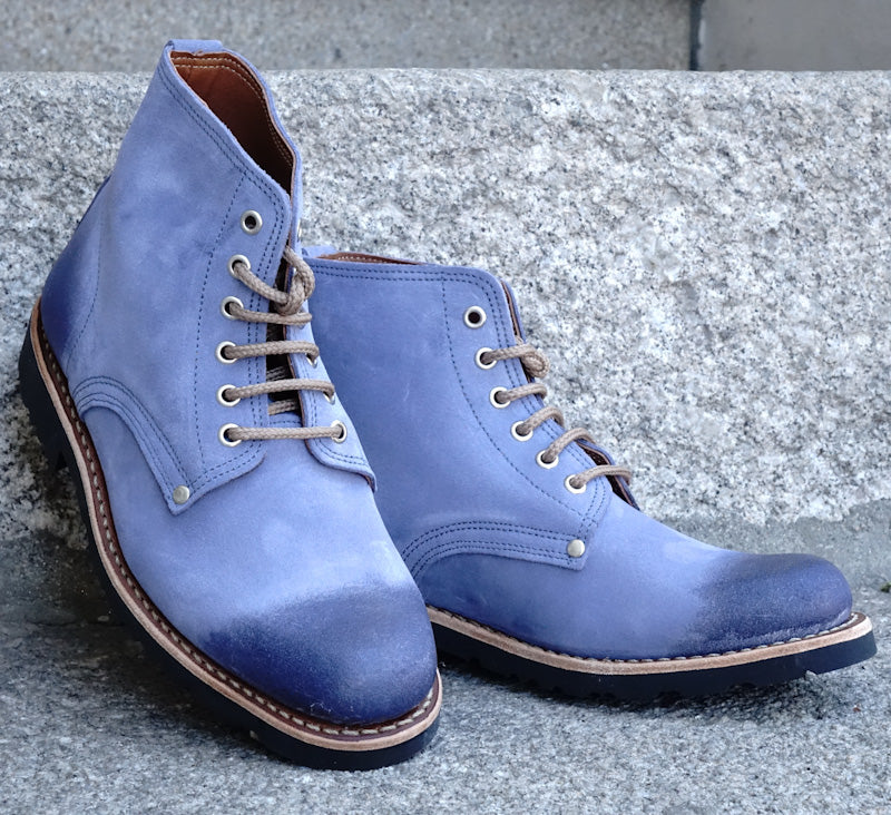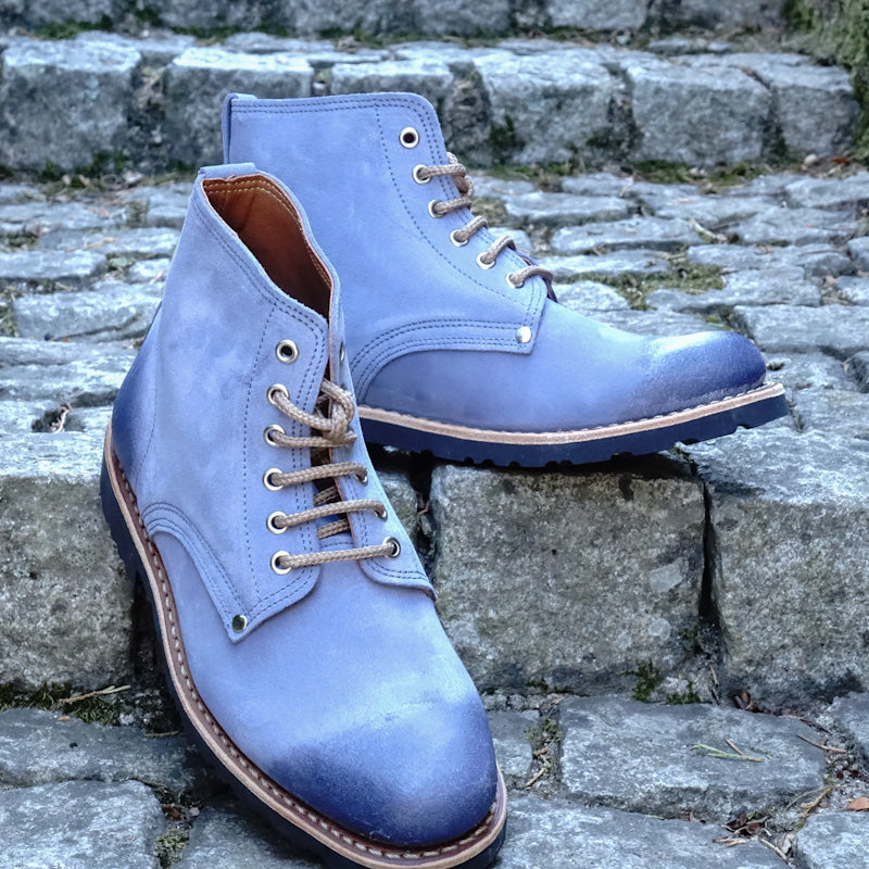 Artisan Made Suede Lace-Up Boots with Cap Toe effect.